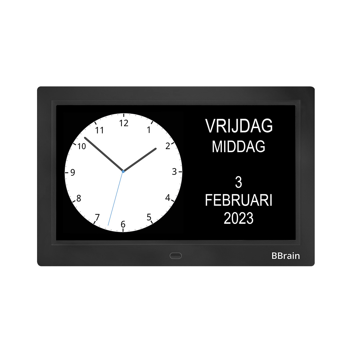 Ben je op zoek naar een klok die op traditionele wijze de tijd, dag, dagdeel en datum weergeeft? Dan is deze analoge klok zeer geschikt. De BBrain analoge dementieklok is speciaal ontworpen voor mensen met (beginnende) dementie of geheugenproblemen. Het is meer dan alleen een klok; het is een onmisbaar hulpmiddel dat het dagelijks leven van mensen vereenvoudigt.
