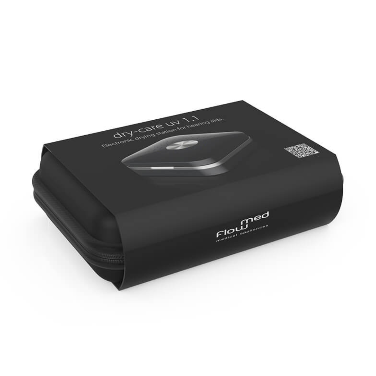 Dry-Care UV 1.1 hoortoestel droogstation zwart in originele Flowmed verpakking met etui