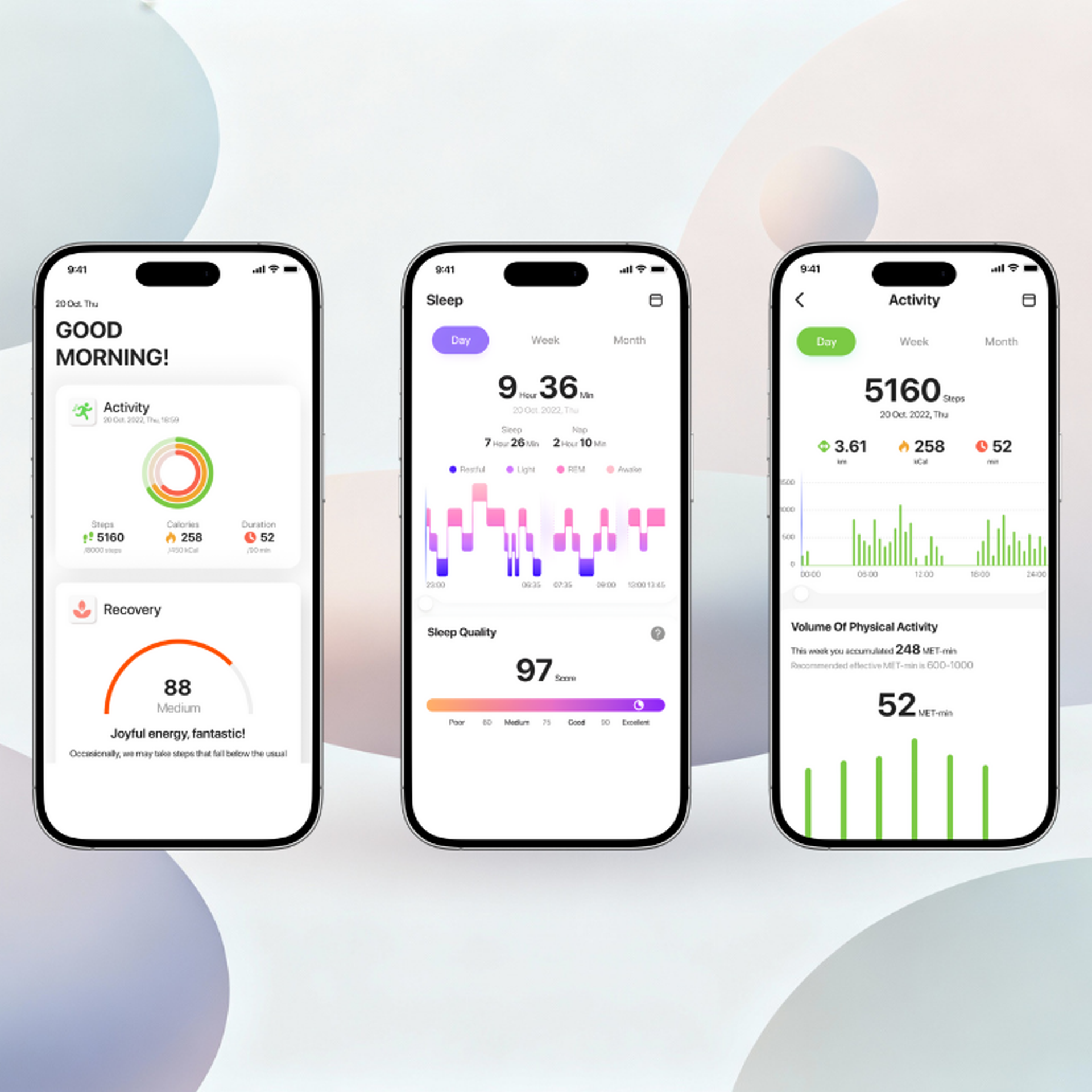 Een schermloze smartband die geen aandacht vraagt. Geen licht, geen meldingen om je pols, geen drukte. Maar wél inzicht op het moment dat jij ervoor kiest.