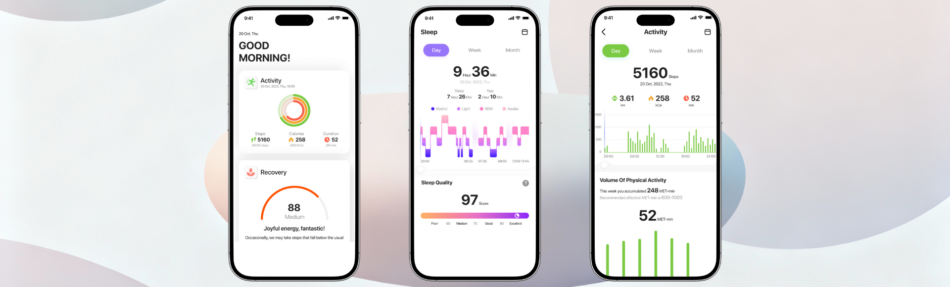 Het is een rustige smartband die je helpt je lichaam beter te begrijpen zonder dat hij iets van je vraagt.
