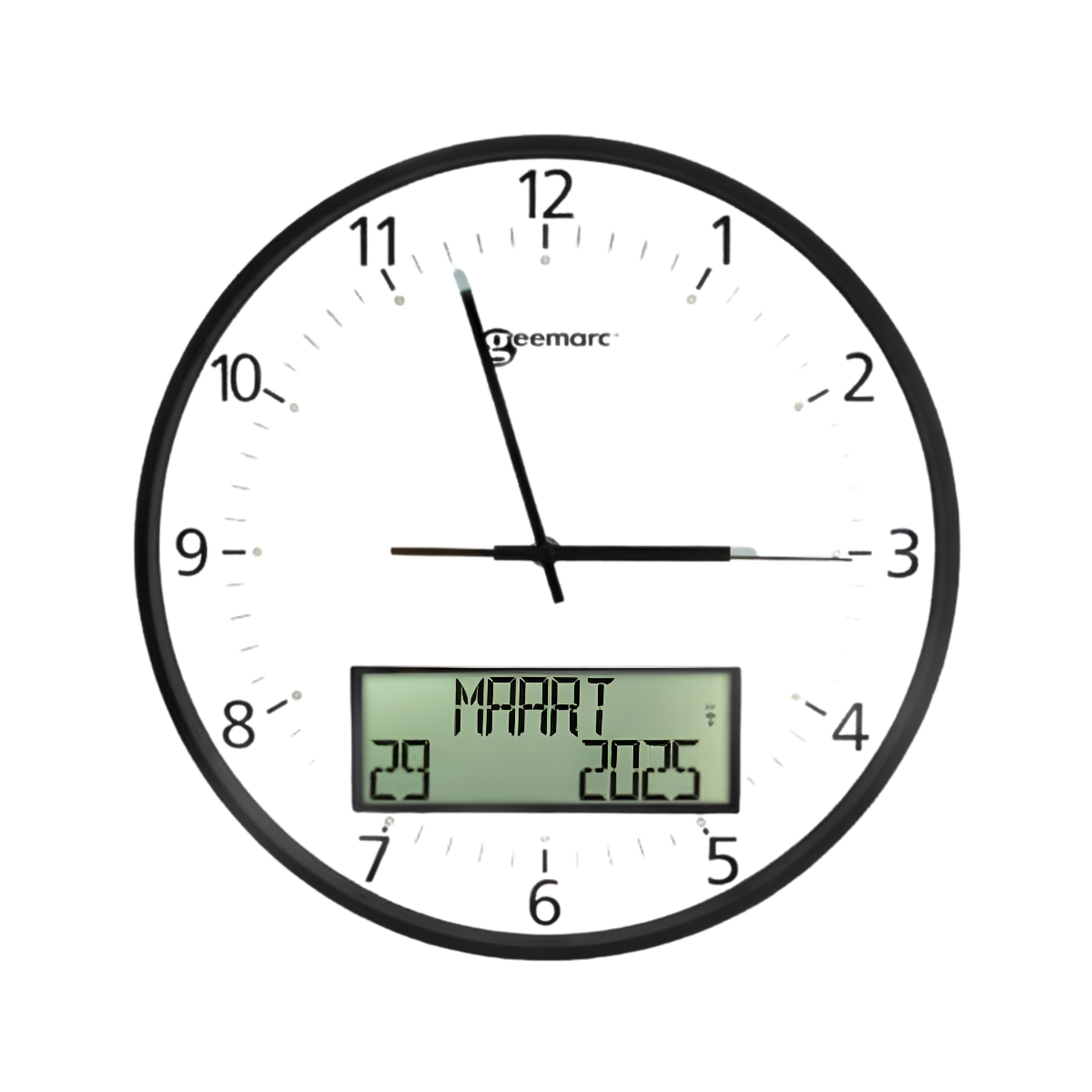 • Grote, duidelijke weergave: Analoge wijzerplaat van 35 cm met goed leesbare cijfers en secondenwijzer.
