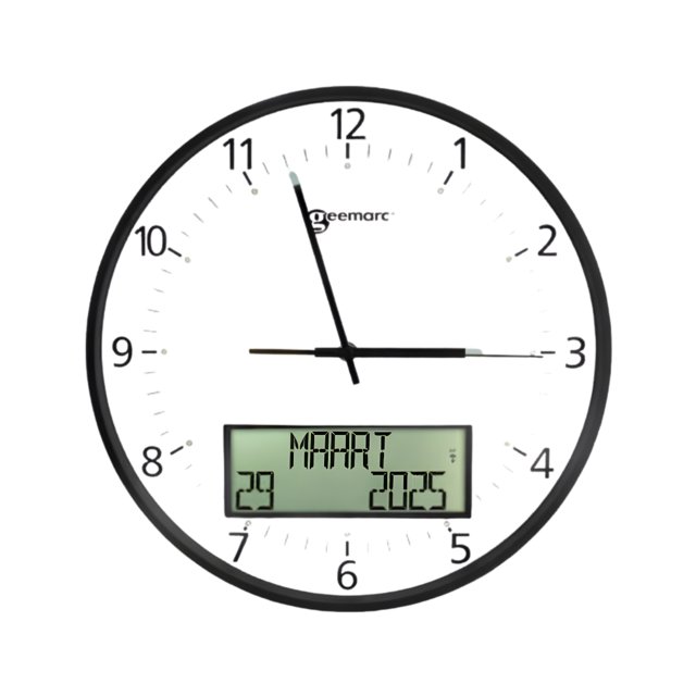 De Geemarc Viso 60 Wit is een stijlvolle wandklok die functionaliteit combineert met een elegant ontwerp. Deze klok is speciaal ontworpen voor wie een duidelijk en betrouwbaar tijdsbeeld nodig heeft – ideaal voor senioren, mensen met geheugenproblemen of slechthorenden die baat hebben bij een goed leesbare klok. Dankzij de combinatie van een analoog uurwerk en een digitaal tekstdisplay zie je in één oogopslag zowel de tijd als de dag, datum en periode van de dag.