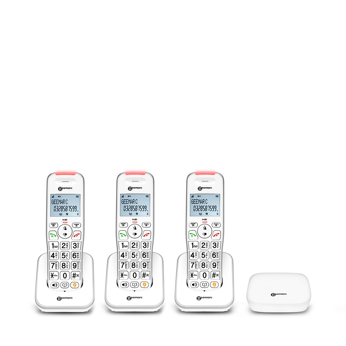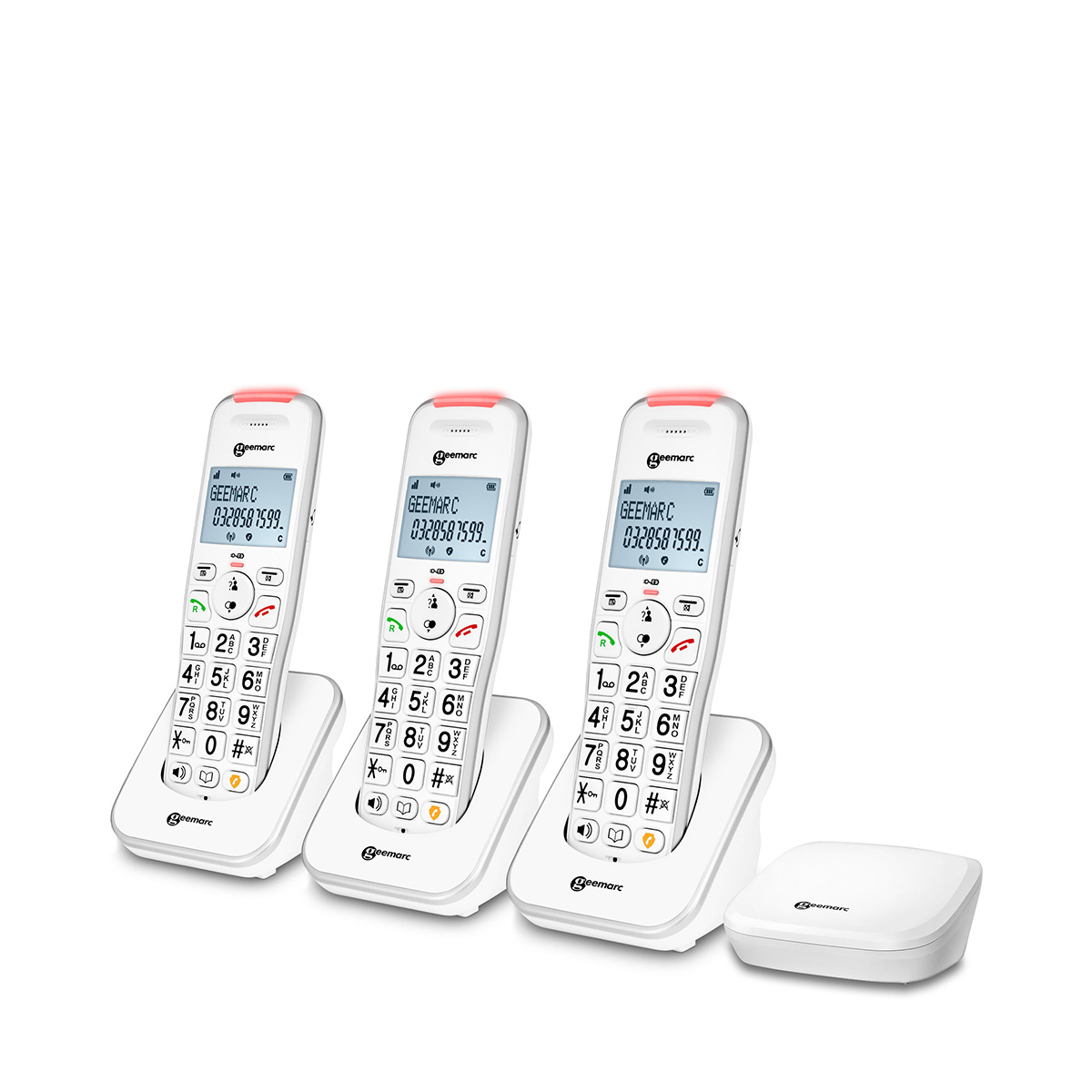 Zoek je een draadloze telefoon met hoog volume, drie handsets én gebruiksgemak voor slechthorenden of ouderen? De Geemarc Liberty 200 Trio is precies wat je nodig hebt. Deze DECT-telefoon met compact basisstation werkt via een vaste telefoonaansluiting, maar je hoeft de handsets niet op het basisstation te plaatsen. Dat maakt deze set ideaal wanneer de telefoonaansluiting zich bijvoorbeeld in de meterkast bevindt. Je geniet van volledige flexibiliteit in huis.