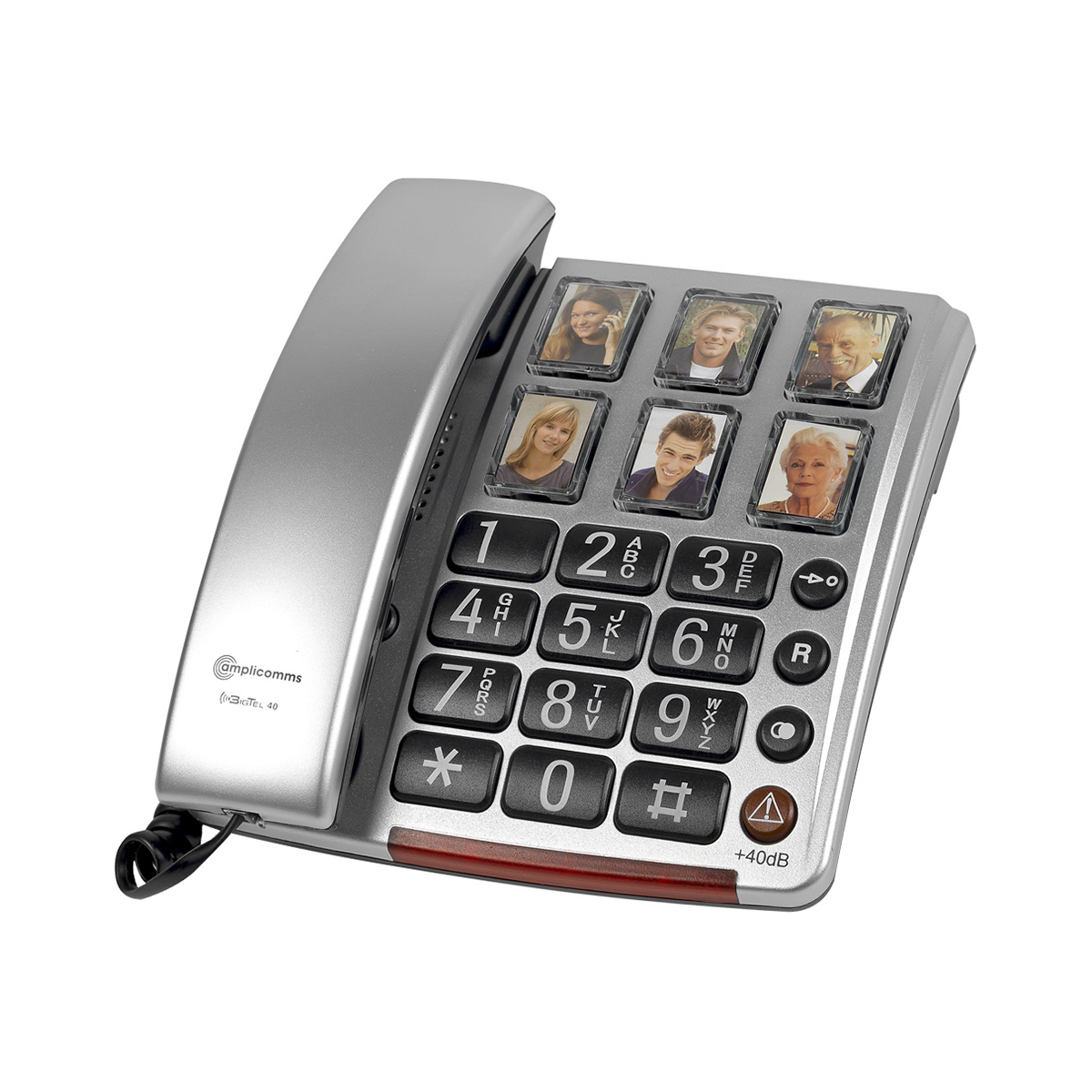 Amplicomms BigTel 40 Plus Zilver Tweede Kans voorkant telefoon fototoetsen